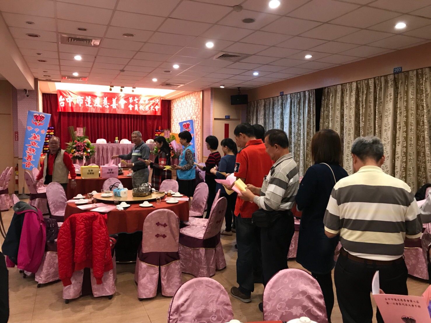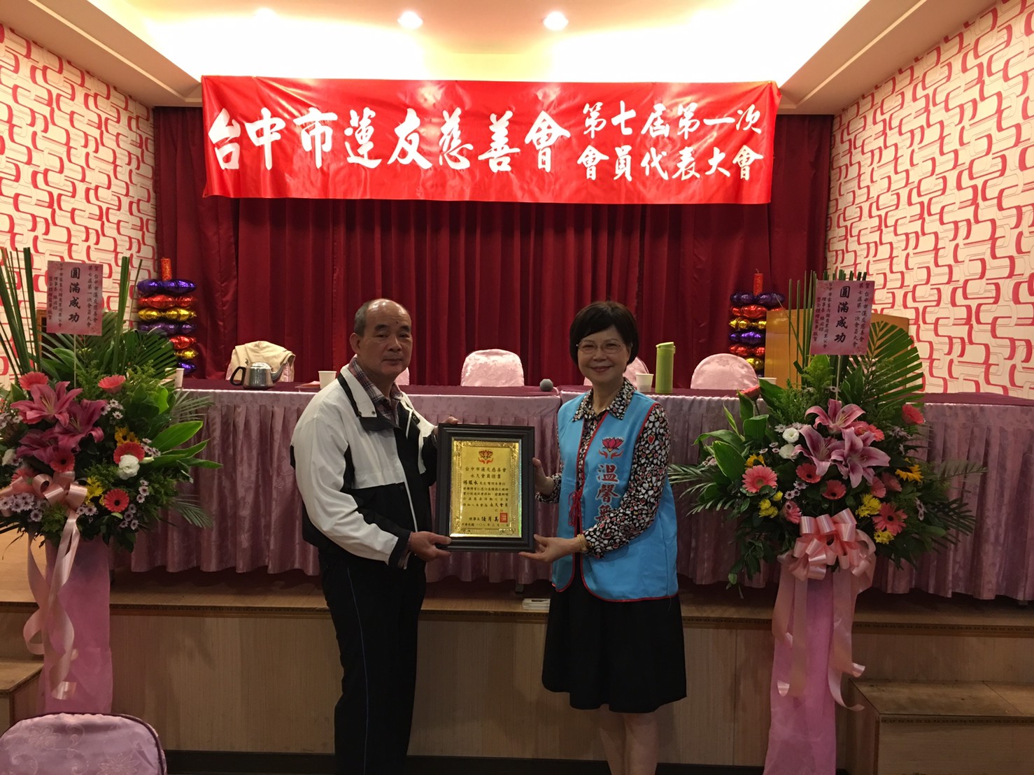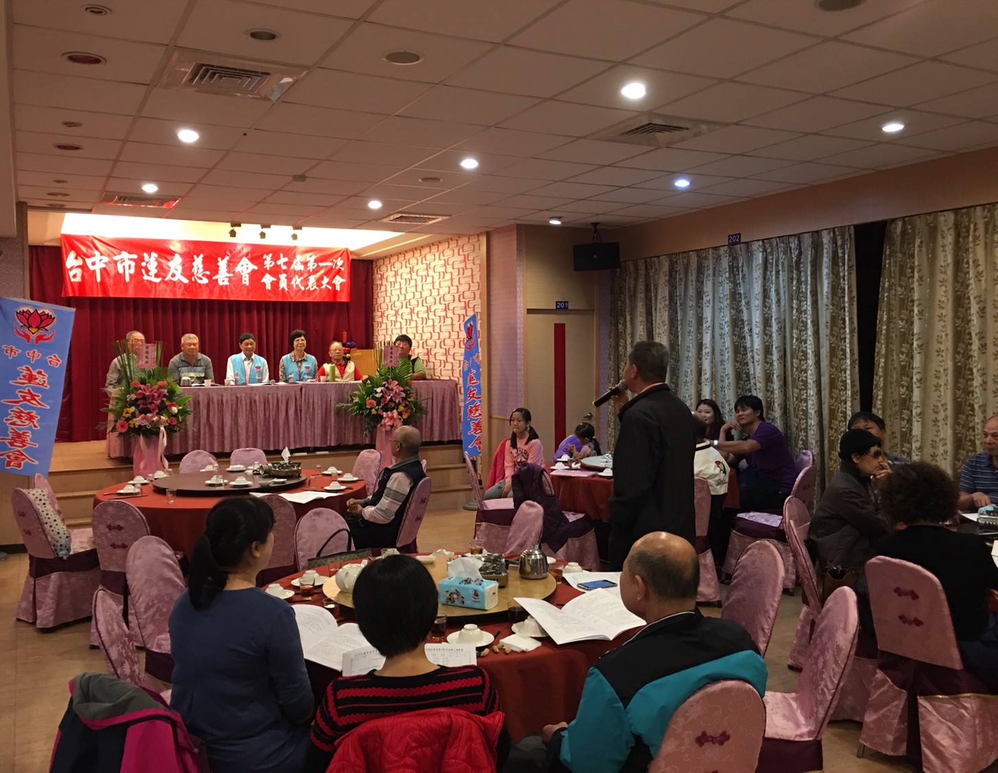 台中市蓮友慈善會第七屆第一次會員代表大會 一、時間:民國108年3月17日(星期日)下午5時。 二、地點:臺中市北區健行路841號珍寶燒肥鵝餐廳。